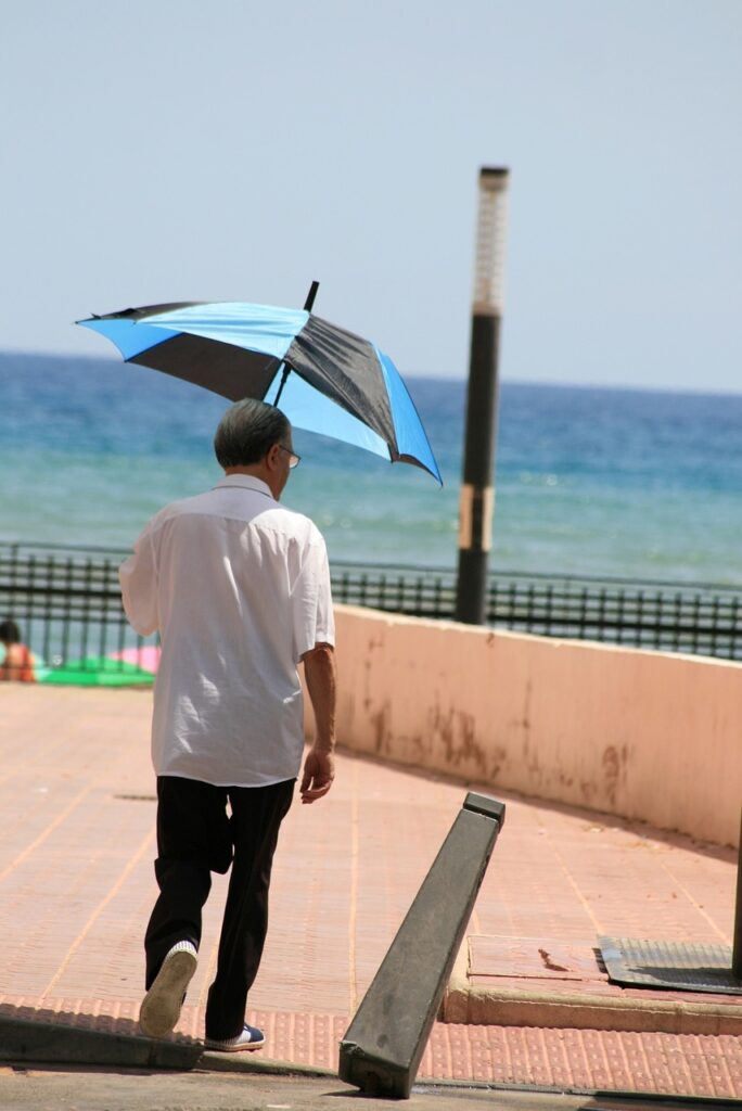 For maximum coverage, consider a sun umbrella with a dark-toned, UPF-treated canopy. It guards against radiation, softens glare, and lets you walk comfortably through even the fiercest daylight.